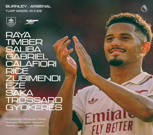 北京时间11月1日23:00,英超联赛第10轮继续进行,阿森纳客场挑战伯恩利,赛前双方首发阵容陆续公布:
