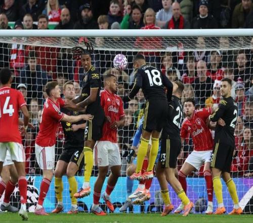 第65分钟,奥多伊左路一对一过掉迪亚洛下底传中,后门柱的伊戈尔-热苏斯近距离头球击中了边网;第67分钟,安德森分球,奥多伊一路奔袭到禁区劲射,皮球是滑门而过;曼联险些再丢一球。在被压制了大半场时间后,终于在第81分钟,姆伯莫角球制导,卡塞米罗摆渡,森林防线勉强解围,迪亚洛弧顶处不等皮球落地直接凌空抽射打进世界波,2:2!