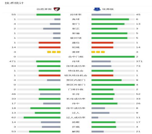 北京时间12月3日,2023-2024赛季英格兰足球超级联赛第14轮,伯恩茅斯主场迎战埃弗顿。上半场,克鲁皮破门因越位在先被吹。下半场,格拉利什射门,击中后卫折射入网。全场比赛结束,埃弗顿客场1-0击败伯恩茅斯。