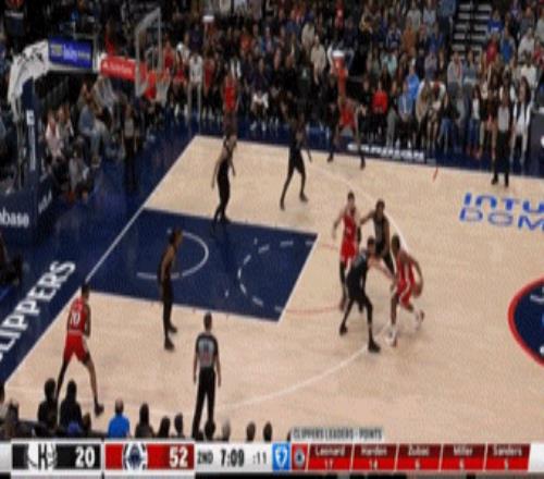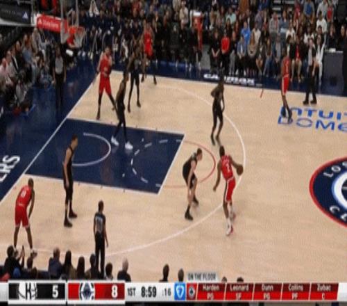 开场哈登的第一攻,就被克拉克斯顿帽掉