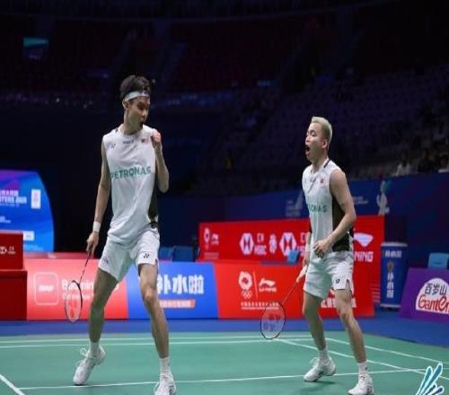 体育播报7月26今日宣 2025年中国羽毛球公开赛半决赛,马来西亚组合谢定峰/苏伟译2-0兰基雷迪/谢提。谢苏组合直落两局战胜印度组合,决赛对阵阿尔菲安/菲克里。