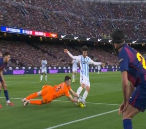 本周三,西班牙裁判技术委员会(CTA)对上周一些比赛中的判罚进行了评析,其中谈到了巴萨对皇家奥维耶多比赛中的判罚。第一次是在奥维耶多门将阿隆-埃斯坎德尔在禁区外接球,裁判穆